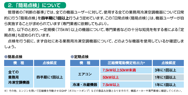 2025.08.01 お知らせ ~~~~~フロン定期点検のご案内~~~~~ 本日はフロン点検についてのご案内です。簡易点検及び定期点検を実施されている方はまだまだ全体数では少ないと思いますが、弊社では専門の資格を有した作業員が点検を行います。定期的なエアコン修理・メンテナンスも必要ですが、定期的に点検を行うことで事前に発見できる可能性もあります。大型ショッピングモールや商業施設でのフロン点検も弊社で実施させていただいております。テナントビルや学校、病院なども過去実績としてありますので工事だけでなく点検から修理・メンテナンスまで一括でお任せいただけると安心してエアコンをご使用いただけると思います。 PDFを開く